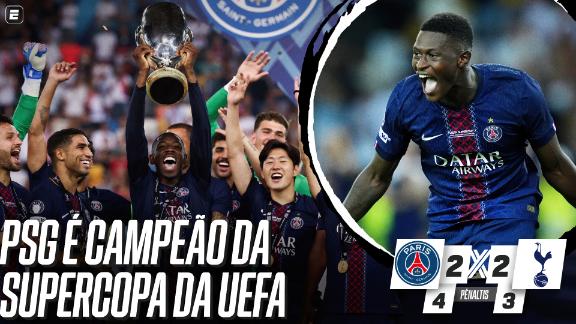 Com dois gols no fim, PSG busca empate com o Tottenham, vence nos pênaltis e conquista a Supercopa